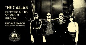 Doors 20:30 – Bipolia 21:15 / Electric Bulbs Of Death 22:00 / The Callas 23:00