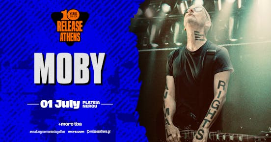 Το Release Athens 2026 υποδέχεται τον Moby, την Τετάρτη 1η Ιουλίου, στην Πλατεία Νερού. Ο Αμερικανός superstar, μια από τις πιο σημαντικές και δημοφιλείς προσωπικότητες της ηλεκτρονικής μουσικής (και όχι μόνο), επιστρέφει δυναμικά στις περιοδείες και την παγκόσμια μουσική σκηνή, υποσχόμενος ένα show γεμάτο με τις μεγαλύτερες επιτυχίες της τεράστιας καριέρας του.