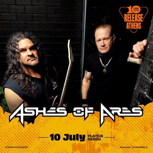 Το Release Athens 2026 υποδέχεται τους Ashes of Ares, την Παρασκευή 10 Ιουλίου, στην Πλατεία Νερού. Το δίδυμο των Matt Barlow και Freddie Vidales (πρώην Iced Earth) θα μοιραστεί τη σκηνή με τους Helloween και Saxon, σε μια βραδιά που συμπυκνώνει την ιστορία και το παρόν του heavy metal.
